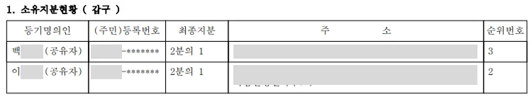공동명의자 중 한 명이 다른 부동산에서 근저당을 잔뜩 걸어두거나 경매가 진행 중이어도 이 집 등기부등본에는 전혀 안 보여요. 집주인 둘 중 한 명이라도 전체 재정이 무너지면, 이 집이 그 여파를 받을 수 있는 상황이 생겨요.