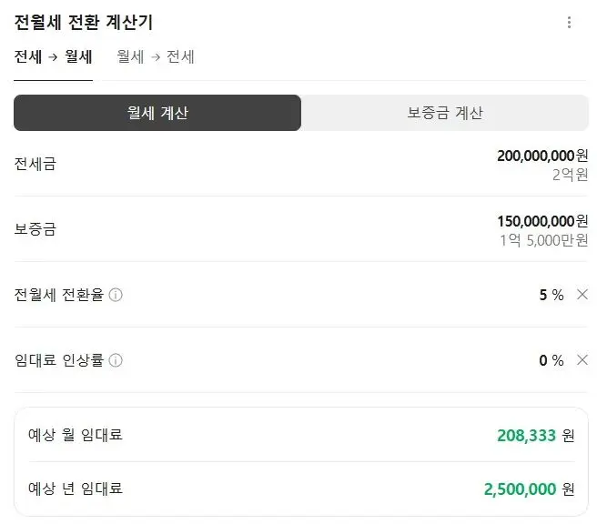 네이버 등의 전월세전환계산기를 이용해서 확인할 수 있어요. 전월세계산기