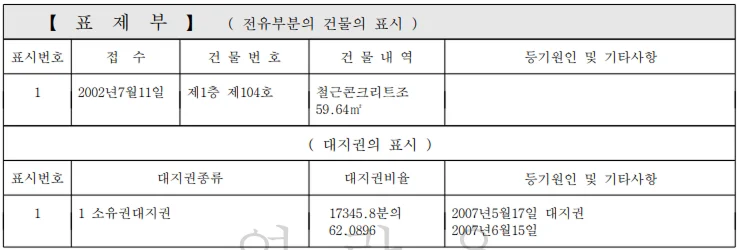 이 집의 소재지, 면적, 구 조가 맞는지 확인해요. 실제 매물과 등기부의 정보가 다르면 문제예요.