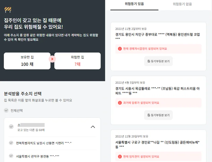 ✅ 집주인 보유 전체 부동산 별도 신청 시 채무·경매 현황 조회