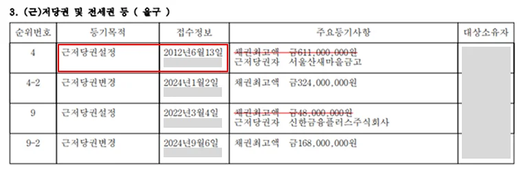 ✔ 근저당 설정일이 언제인지