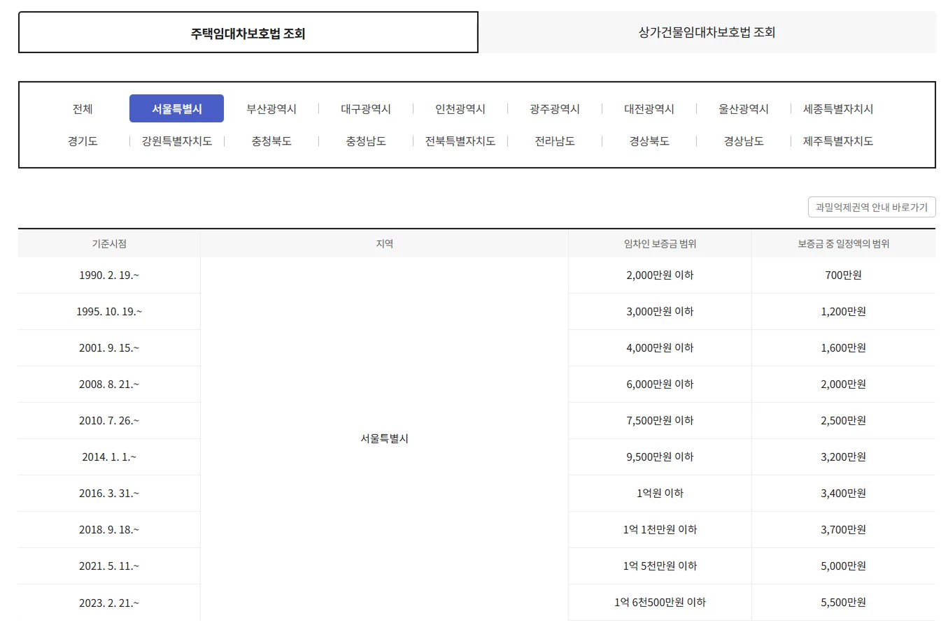 하지만 여기서 중요한 건 ✔ 보증금이 적다의 기준은 내가 느끼기에 적은 금액이 아니라 지역별 법정 기준 금액 이하일 때만 해당된다는 것이에요.