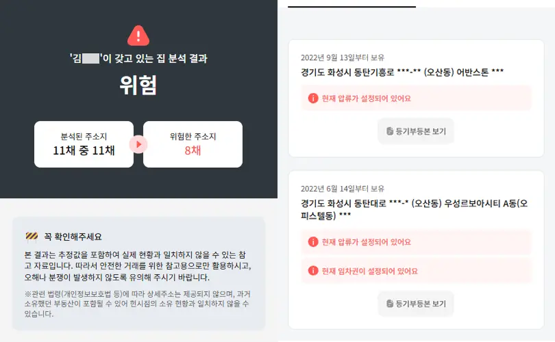 ✔️ 집이 안전한 구조인지 ✔️ 집주인이 과거 사기 이력은 없는지 ✔️수십 채, 많게는 수백 채를 보유한 재정적으로 위험한 다주택자는 아닌지