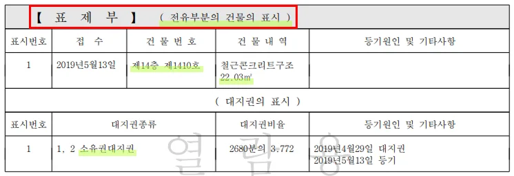 ✔ 여기서 확인할 것: 계약서에 적힌 주소와 표제부의 주소가 정확히 일치하는지.