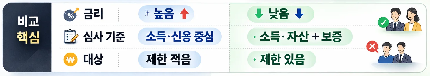 둘 다 금리가 낮아 인기가 높지만 대상과 한도, 금리 구조는 서로 달라요.