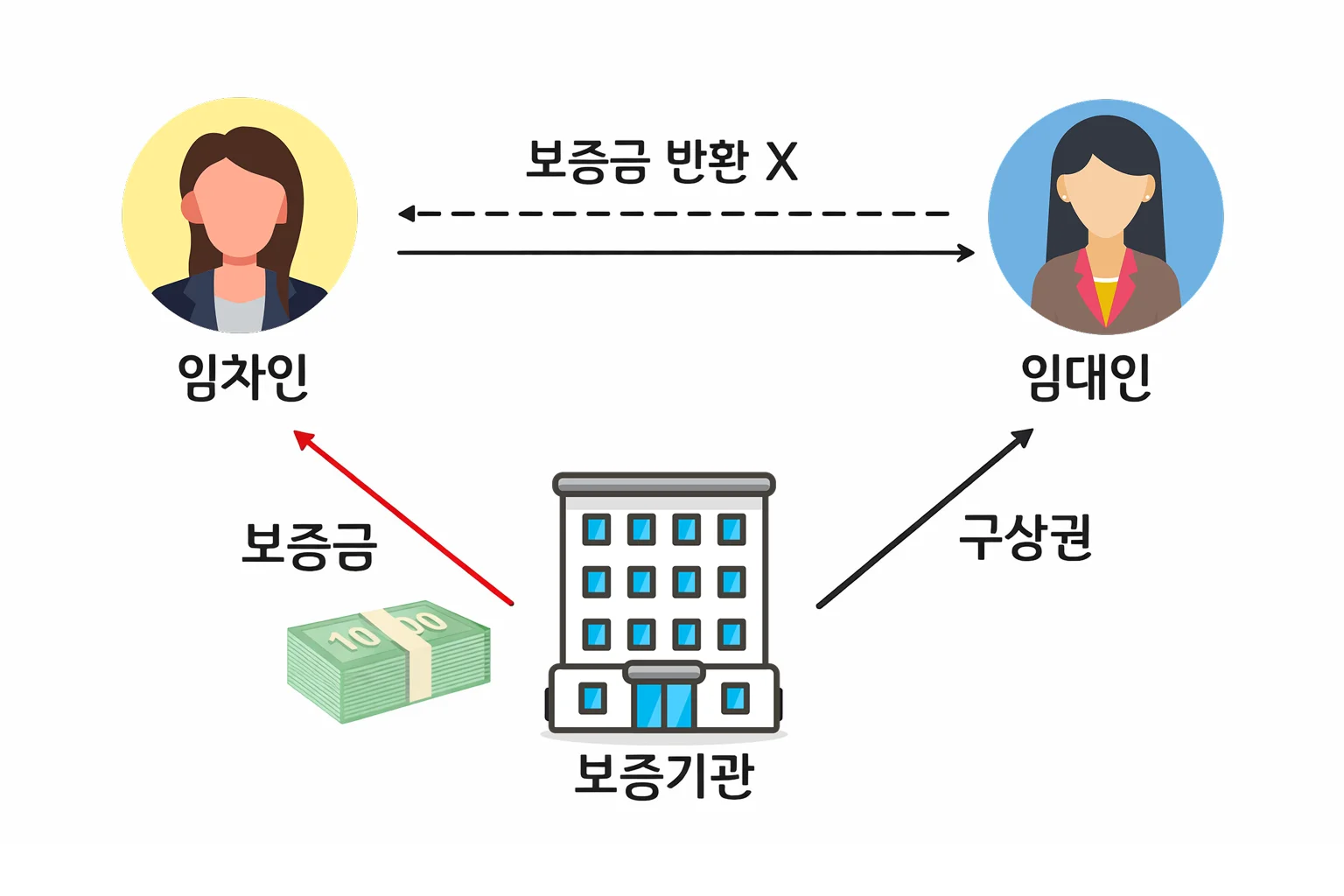 전세보증보험(전세보증금 반환보증)은 집주인이 보증금을 못 돌려줄 때 보증기관이 먼저 세입자에게 지급하고, 이후 보증기관이 집주인에게 구상권을 행사하는 구조예요.
