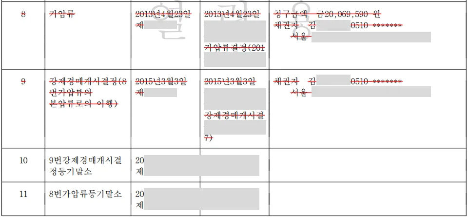 특히 같은 집주인 건물의 다른 호수에서 가압류나 경매가 진행된 경우라면 더욱 확인이 필요하죠.