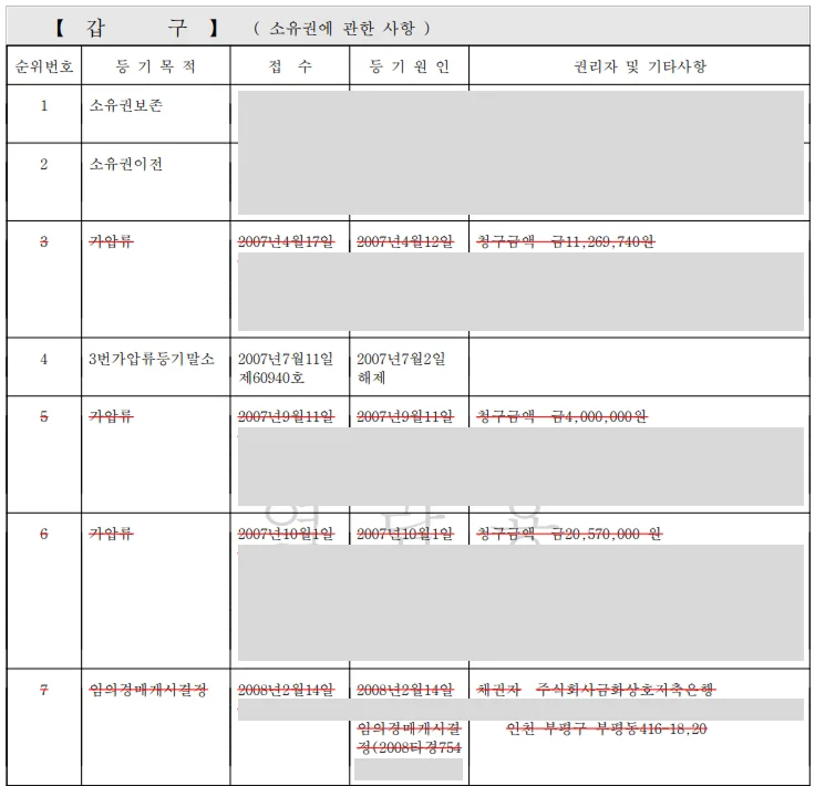현재 소유자가 누구인지, 경매나 가압류가 진행 중인지 확인해요.