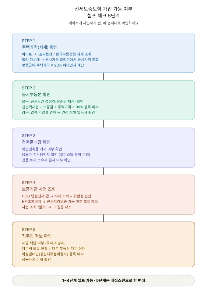 사전 조회에서 ‘가능’이라고 나와도 실제 심사에서 거절될 수 있어요. 사전 조회는 참고용일 뿐, 최종 결과는 서류 제출 후 심사를 거쳐야 확정돼요. 그래서 사전 조회에서 ‘불가’가 나오면 그 집은 확실히 피하고, ‘가능’이 나와도 아래 5단계까지 추가로 확인하는 게 안전해요.