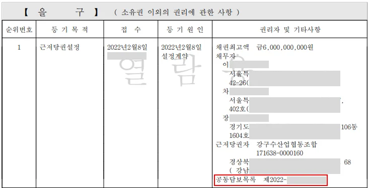 ⚡ 을구에 ‘공동담보’가 보이면 반드시 ‘공동담보목록’까지 확인