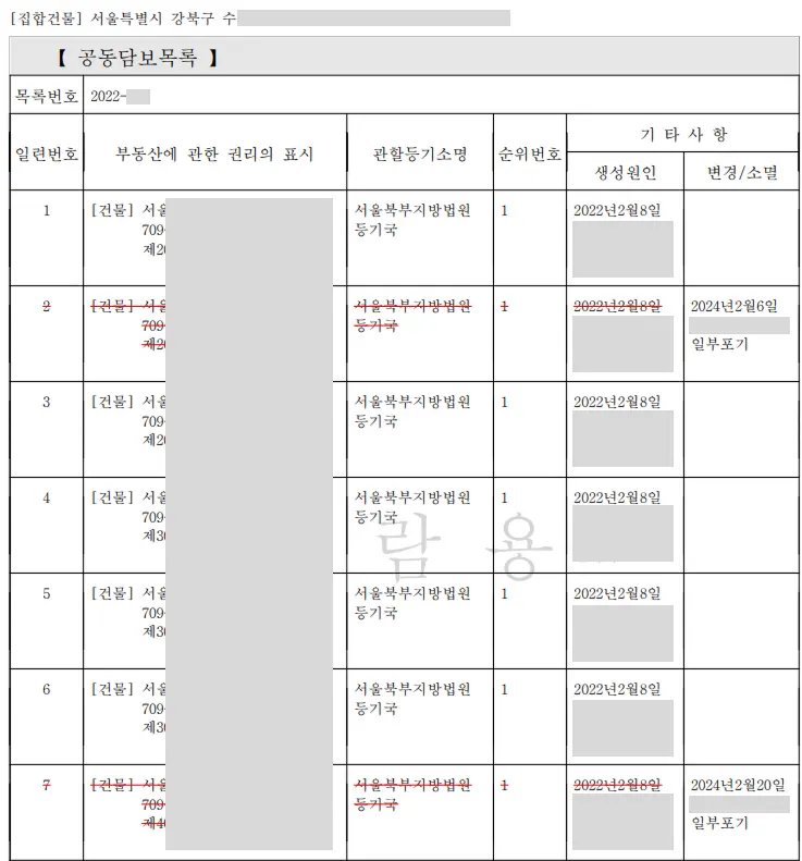 공동담보는 을구에 ‘공동담보’라는 글자 하나만 보고 끝내는 것보다 정확한 목록을 확인하는 것이 좋아요.