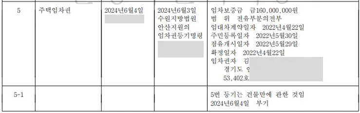 💡 세입자가 보증금을 돌려받지 못했을 때 본인의 권리를 지키기 위해 등기부등본에 ‘임차인의 권리’를 등기해두는 것이에요.