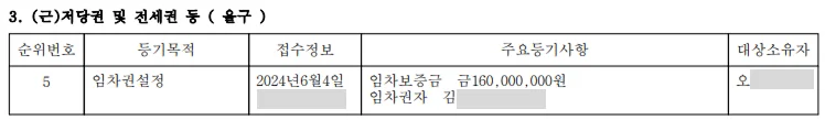 등기부등본 을구에서 아래 문구가 보이면 임차권설정이 되었다는 것이에요.