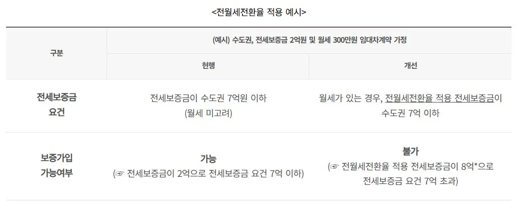 개선안: 전세보증금이 수도권 7억원, 그 외 지역 5억원 이하일 것.