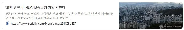 관련기사 <서울경제>: '고액 반전세' HUG 보증보험 가입 막힌다